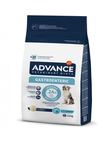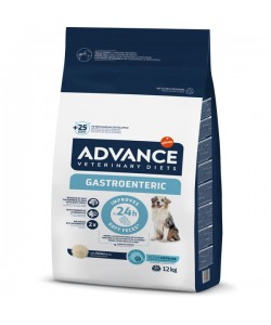 ADVANCE VETERINARY DIETS GASTROENTERIC es un alimento dietético completo para cachorros y perros adultos, elaborado con ingredientes muy digestibles, nivel bajo de grasa y una mayor proporción de sodio y potasio para reducir los trastornos gastrointestinales y para casos de insuficiencia pancreática exocrina.
