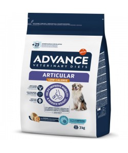 ADVANCE VETERINARY DIETS ARTICULAR REDUCED CALORIE es un alimento dietético completo y equilibrado, formulado para la recuperación y el apoyo nutricional al tratamiento médico de perros adultos con sobrepeso con problemas de articulaciones.
