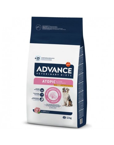 ADVANCE VETERINARY DIETS ATOPIC CONEJO & GUISANTES es un alimento dietético completo y equilibrado para perros adultos formulado para cuidar de la piel en caso de dermatitis y pérdida de pelo excesiva, así como para la reducción de intolerancias a ingredientes y nutrientes.