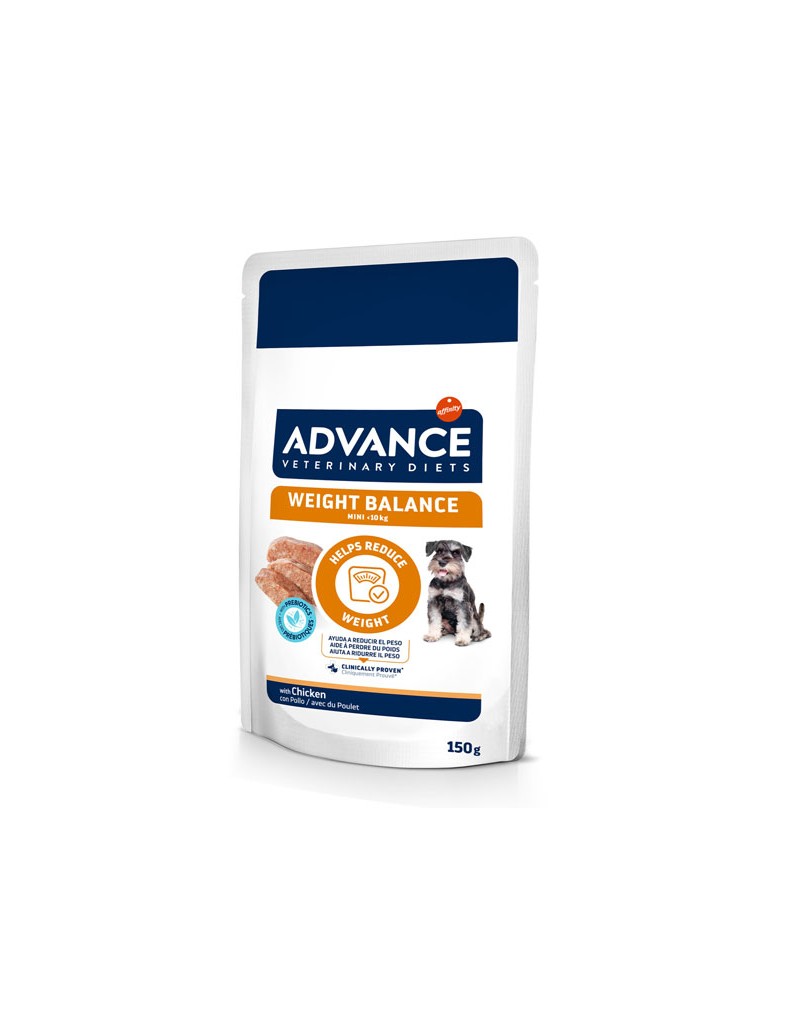 ADVANCE VETERINARY DIETS WEIGHT BALANCE es un alimento dietético completo y equilibrado formulado para reducir el exceso de peso y regular el metabolismo lipídico en caso de hiperlipidemia, con niveles bajos de energía y alto contenido de proteínas y f