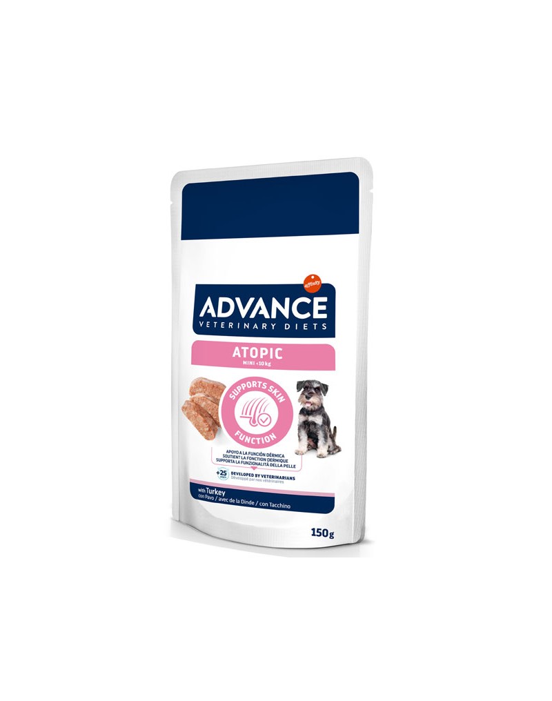 ADVANCE VETERINARY DIETS ATOPIC es un alimento dietético completo y equilibrado, formulado para cuidar de la piel en caso de dermatitis, así como para reducir de intolerancias a ingredientes y nutrientes.