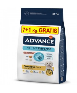 ADVANCE Sensitive Mini es un alimento completo y equilibrado especialmente formulado para perros adultos mini con sensibilidades digestivas (<10 kg).