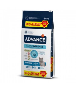 Cuando esterilizas a tu gato, es muy importante cuidar su nutrición con un alimento específico que se adapte a sus necesidades, ayudándole a controlar su peso, mantener el tracto urinario sano y una condición corporal ideal. ADVANCE Sterilized Adult ayuda a las defensas y barreras naturales de tu gato, manteniendo un pH óptimo de la orina y previniendo la formación de sarro. Además, gracias a su fórmula y a sus ingredientes cuidadosamente seleccionados, contribuye a la salud intestinal y ayuda a controlar el peso de tu gato. ADVANCE Sterilized Adult está especialmente indicado para gatos esterilizados de a partir de 1 año.